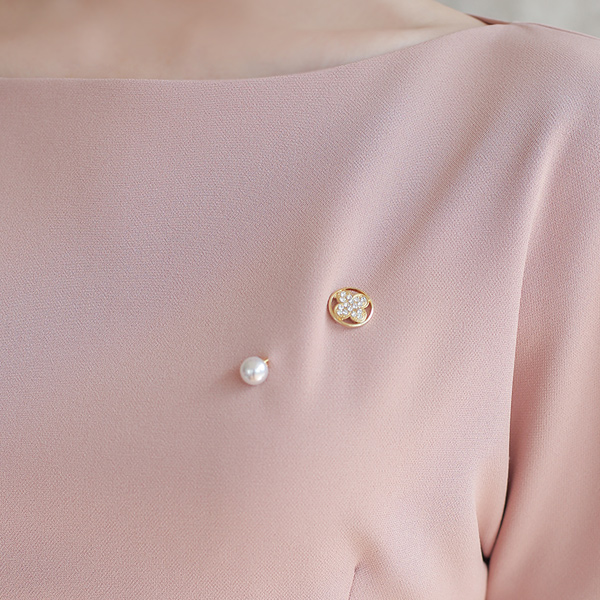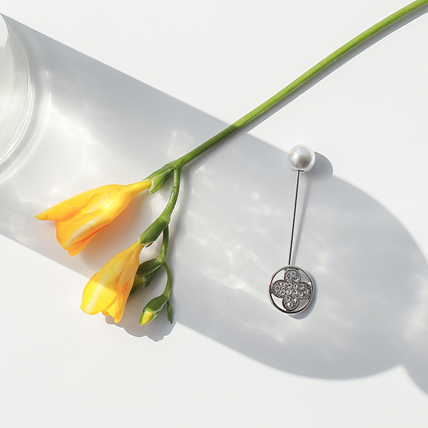 圆形 三叶草 镶钻 珍珠 银针 胸针