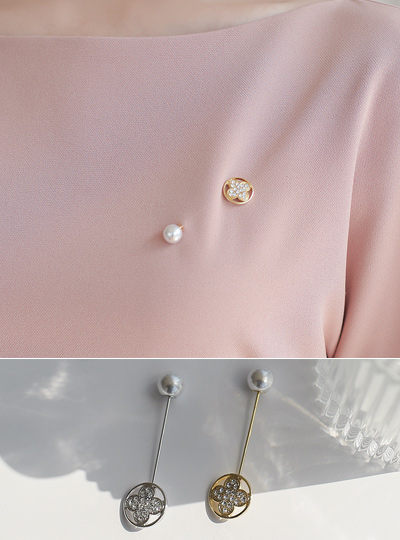 圆形 三叶草 镶钻 珍珠 银针 胸针