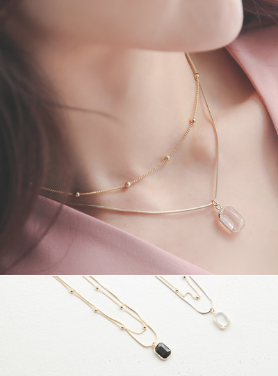 Gold 球 镶钻 分层 项链