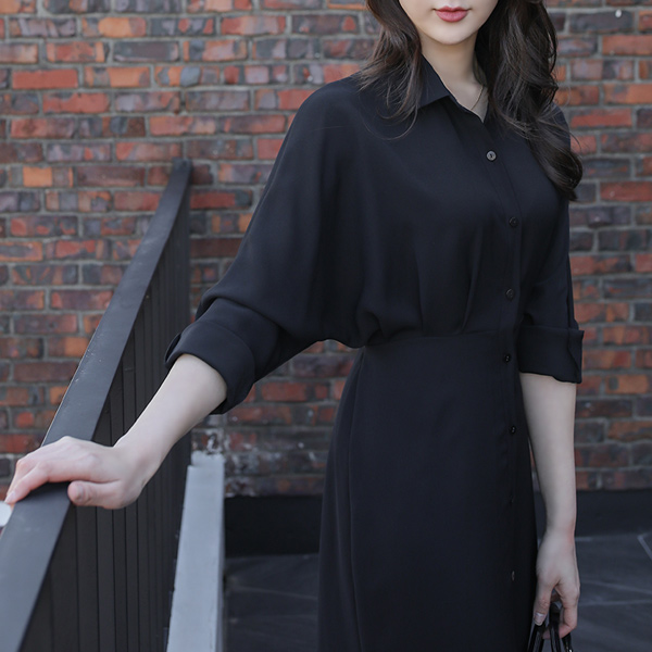 曲线 细褶 后面蝴蝶结 蝙蝠 衬衫 连衣裙