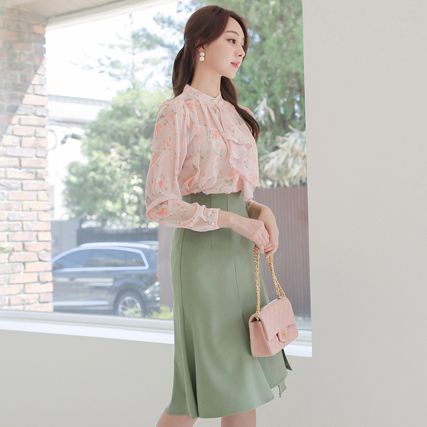 女花神 褶裥 围巾 珍珠扣 罩衫