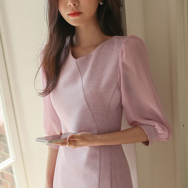 雪纺 7分袖 粗呢 LV 连衣裙