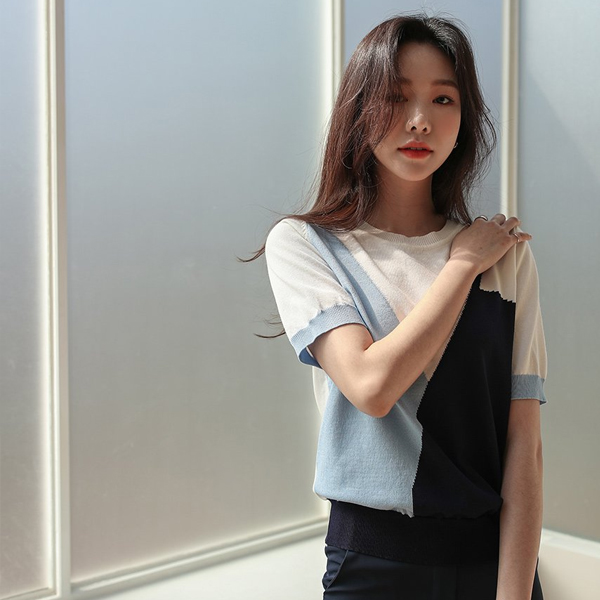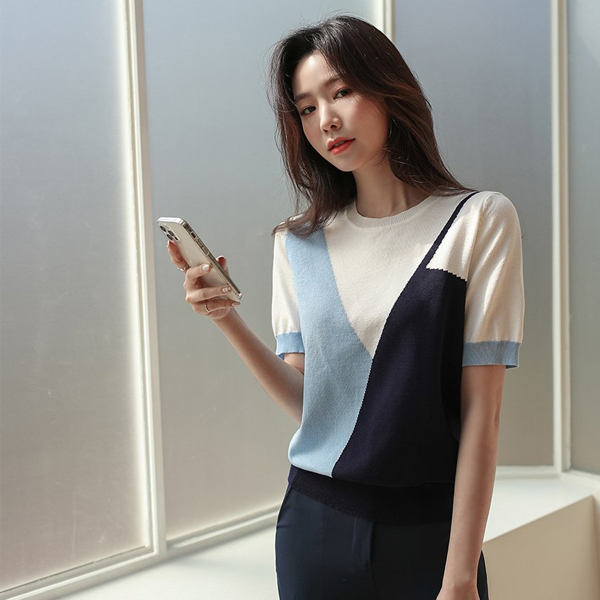 斜线 鲜明 混合颜色 半袖 针织t恤