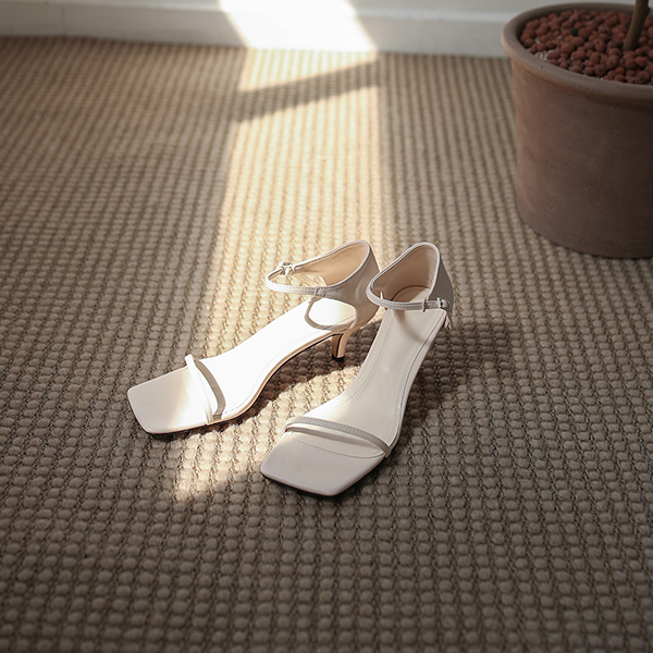 最少 Square Toe 修身 露跟高跟鞋