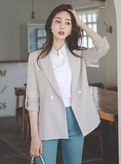 凉爽 莫代尔 卷起衣袖 侧纽 开衩 夹克