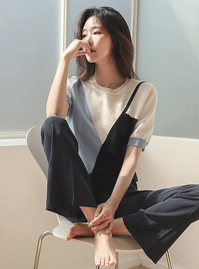 斜线 鲜明 混合颜色 半袖 针织t恤