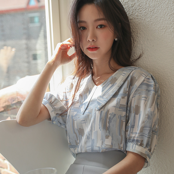 化妆刷 亚麻材质 水手 领子 罩衫
