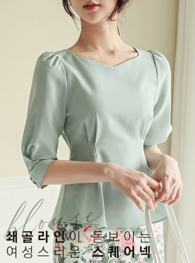 方领 细褶线条 荷叶边 罩衫