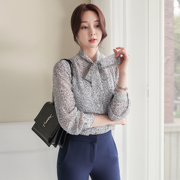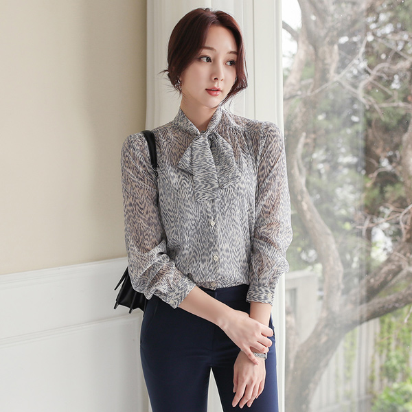 Leopard 雪纺 领带 罩衫