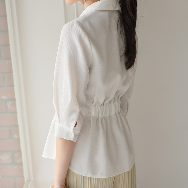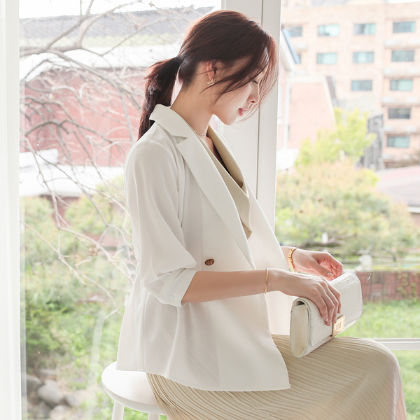 清爽 双排扣 后侧松紧带 细褶 夹克
