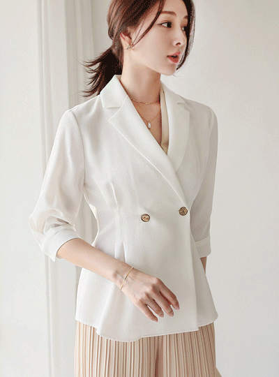 清爽 双排扣 后侧松紧带 细褶 夹克