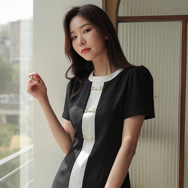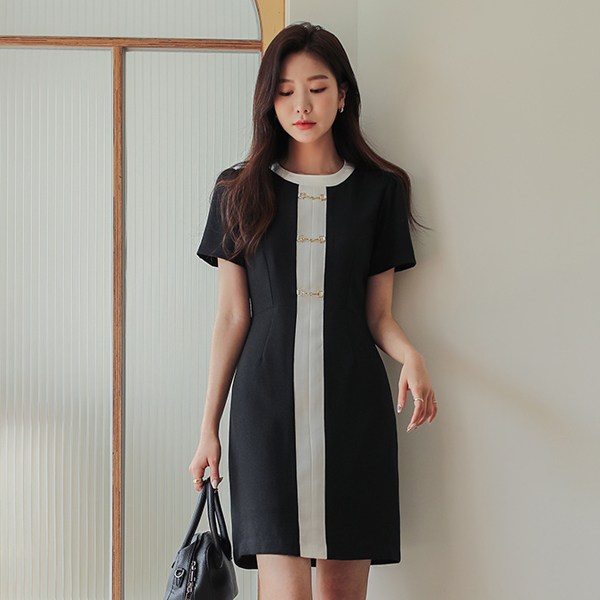 配色线 金圈 Horsebit 连衣裙