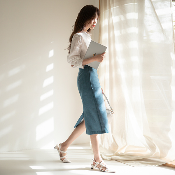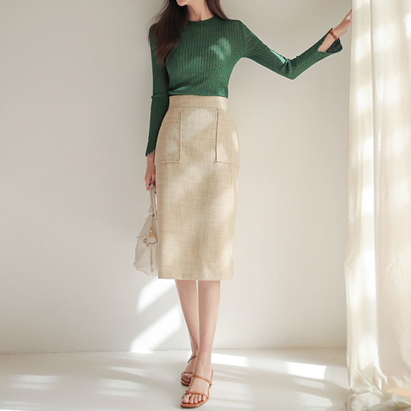袖珍线 缝线 高腰 裙子