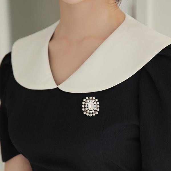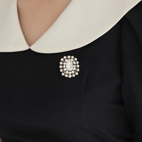 方形 珍珠&镶钻 胸针