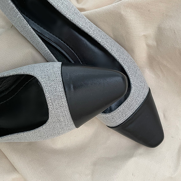 配色 质地 光面皮鞋 低跟鞋 鞋