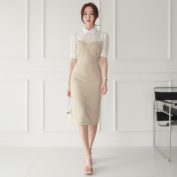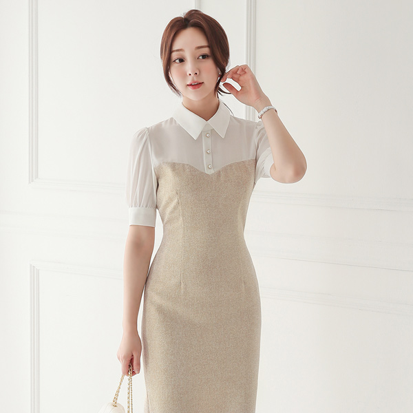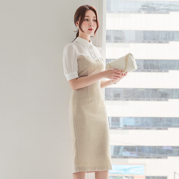 珍珠 衬衫 分层 粗呢 连衣裙