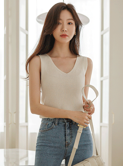 鲜艳 条绒 深v领 背心/打底衫 针织衫