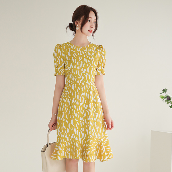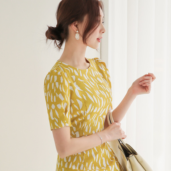 配色 触摸 亚麻 质地 褶裥 连衣裙