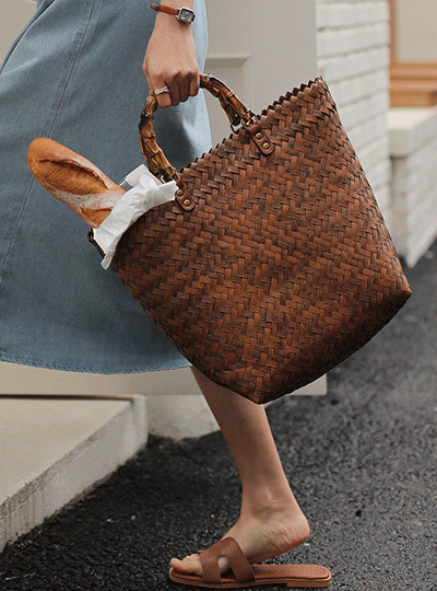 自然 竹节棉 拎手 藤袋