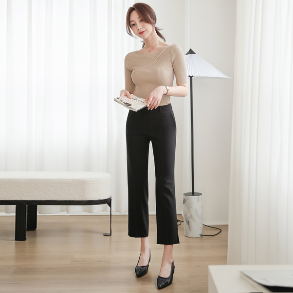 日常 迷你 开衩 一字型 弹力 宽松长裤(summer)