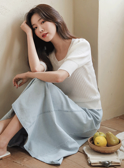 Holiday 软绵绵软的 后侧松紧带 牛仔色 裙子