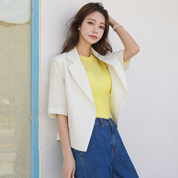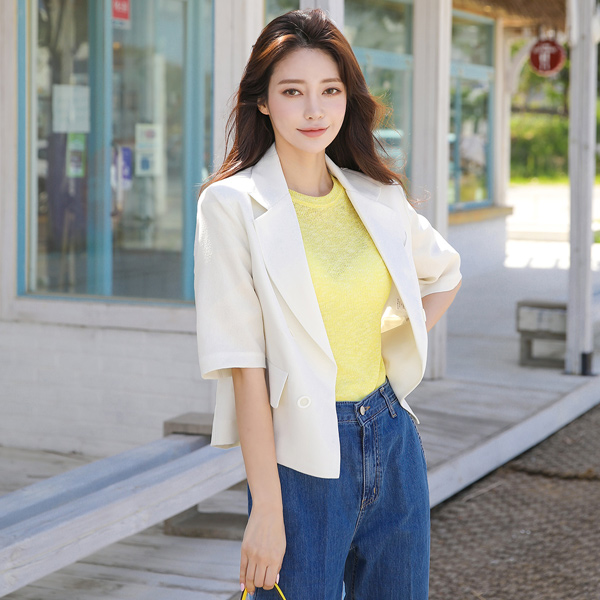 亚麻 触摸 双排扣 敞开式 短夹克