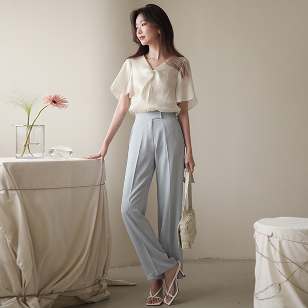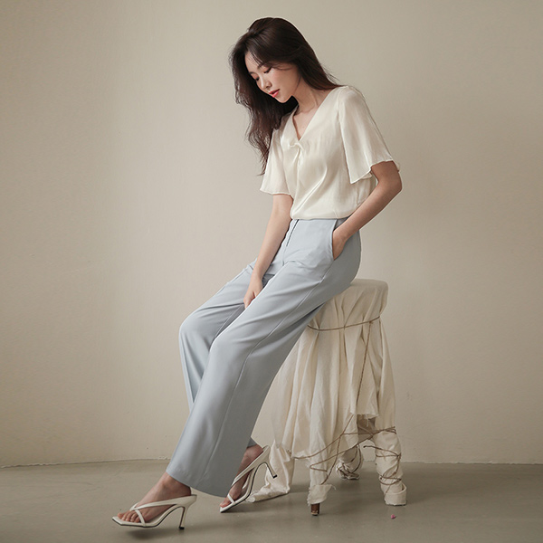 闪亮 飞袖 打结 罩衫