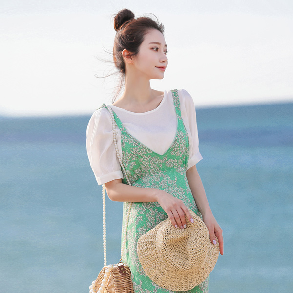 肩膀 蝴蝶结 吊带 雪纺 超长 连衣裙