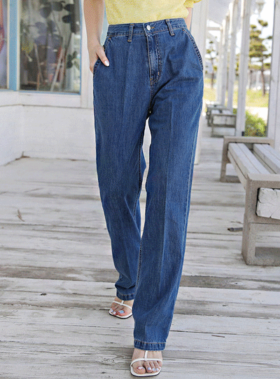 点缀 去皱纹 柔丝 宽松 长款 牛仔色 裤子
