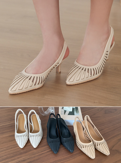 印花 线条 露脚后跟鞋 高跟鞋
