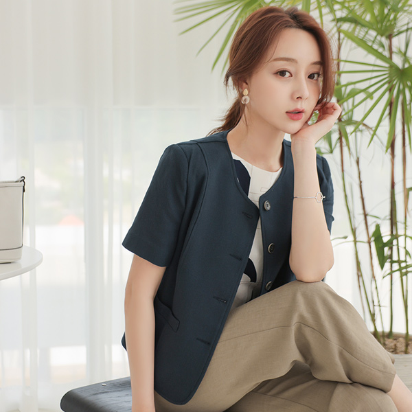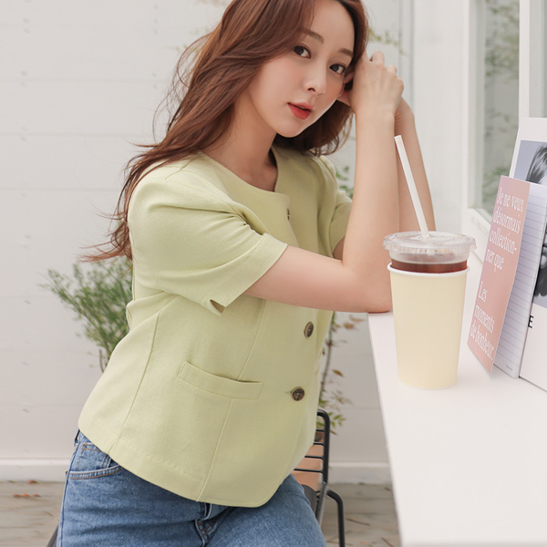 棉 华夫格 木纹扣子 圆领 夹克