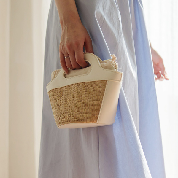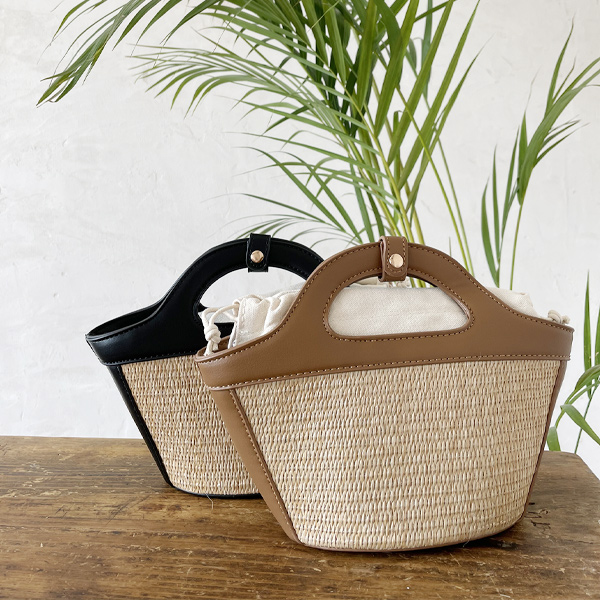人造皮革配色 棕榈叶纤维 迷你 手提包