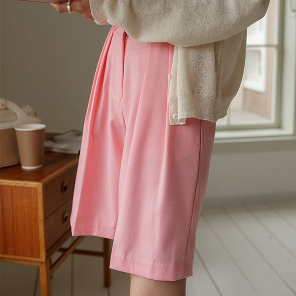 双 细褶 Macaron 5分 裤子