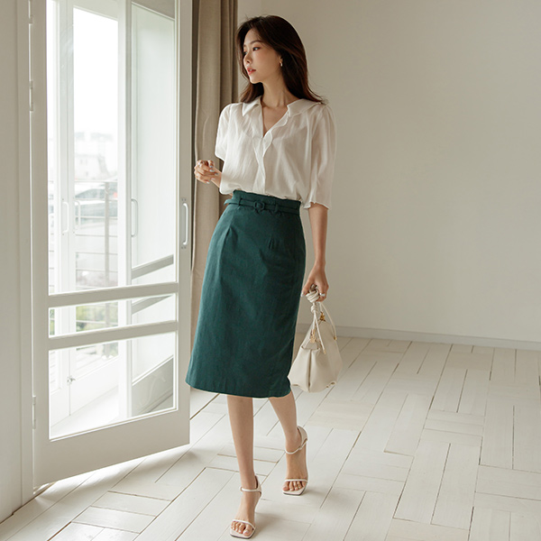 最低限度 摩纳哥风 束带 亚麻 裙子