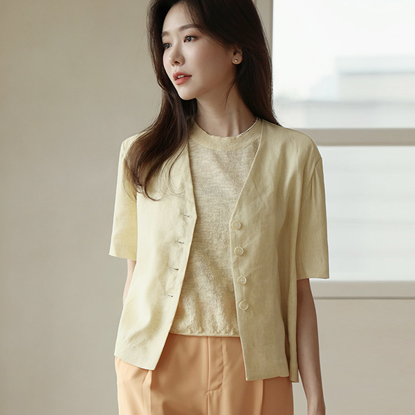 无领 大理石 扣子 灯光 亚麻 夹克