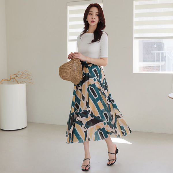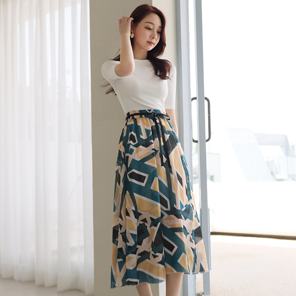 印染 棉 绷带 蝴蝶结 喇叭 裙子
