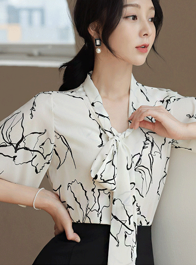 墨水 绘图 花纹 飞袖 领带 罩衫
