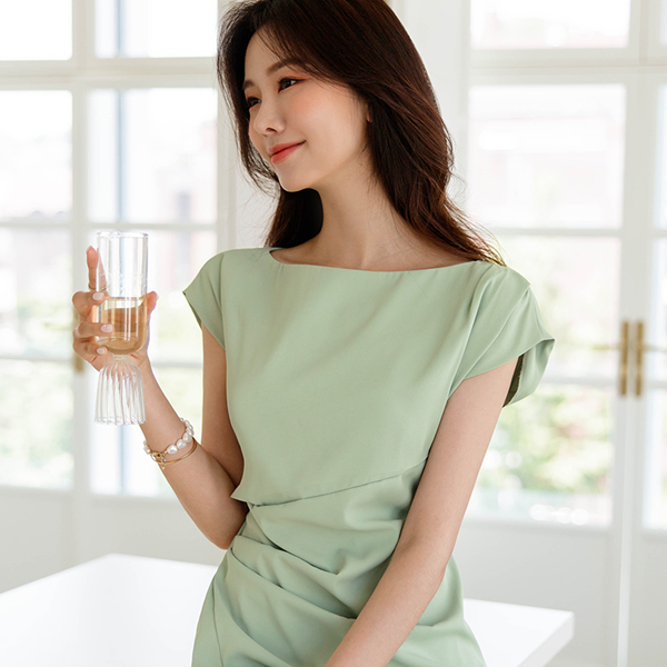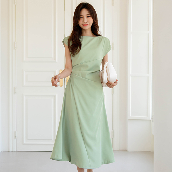Grace 侧纽 褶皱 长款连衣裙