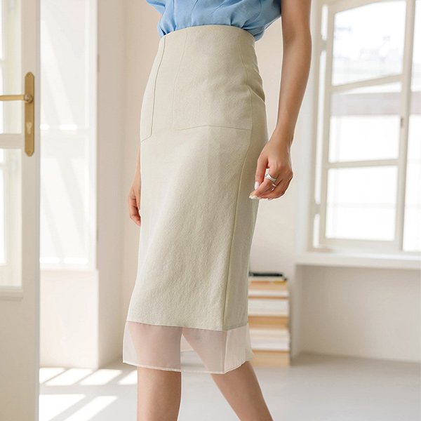 古典 尾缘 透视 中长 裙子