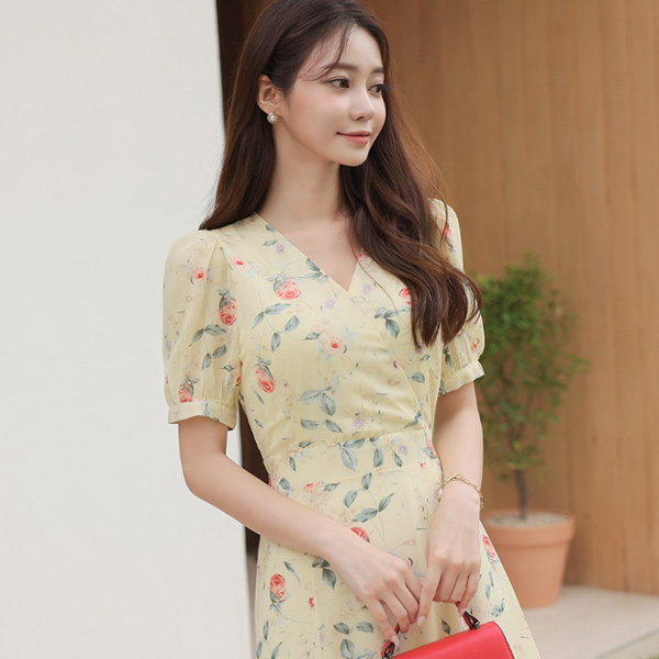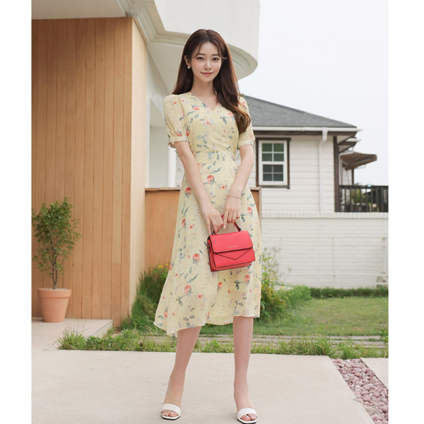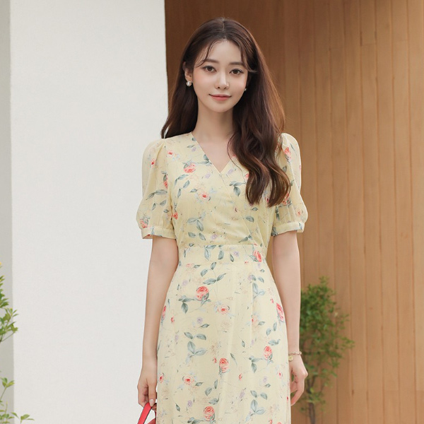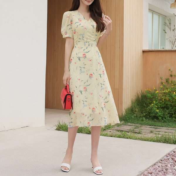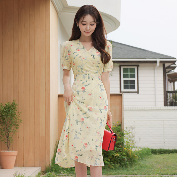 浪漫 玫瑰 雪纺 喇叭 连衣裙