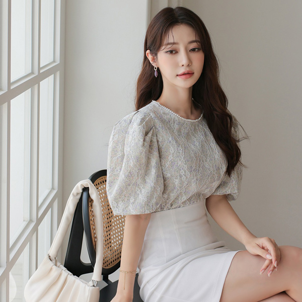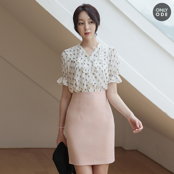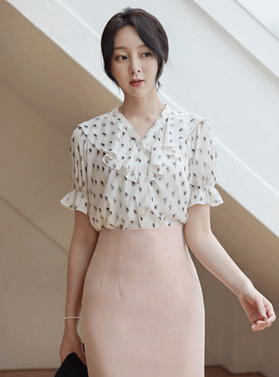 调色板 彩绘 荷叶边线条 V字领 罩衫