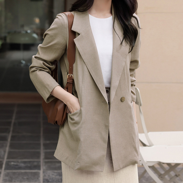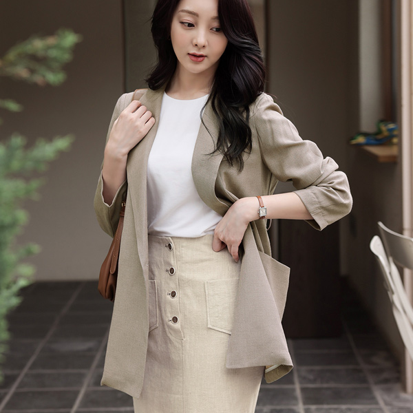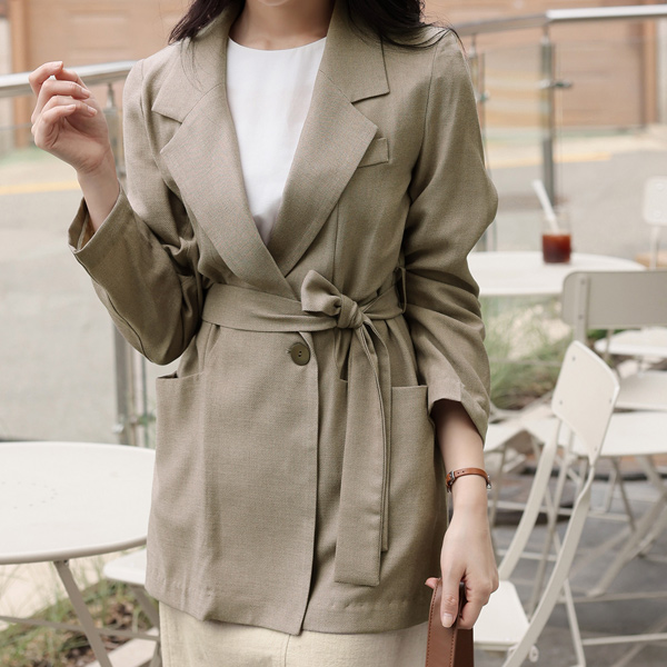 亚麻混纺 灯光 口袋 束带 夹克