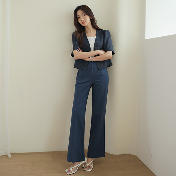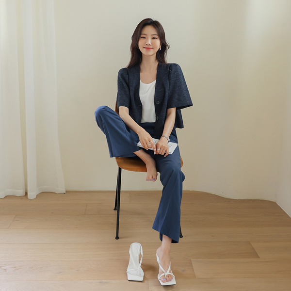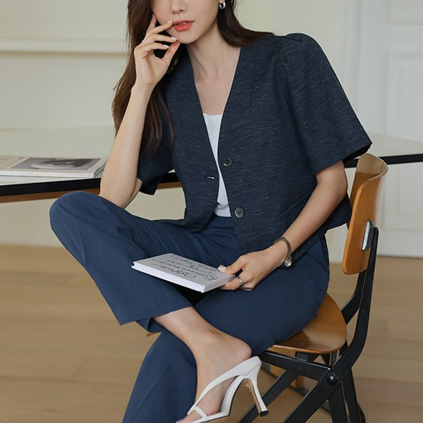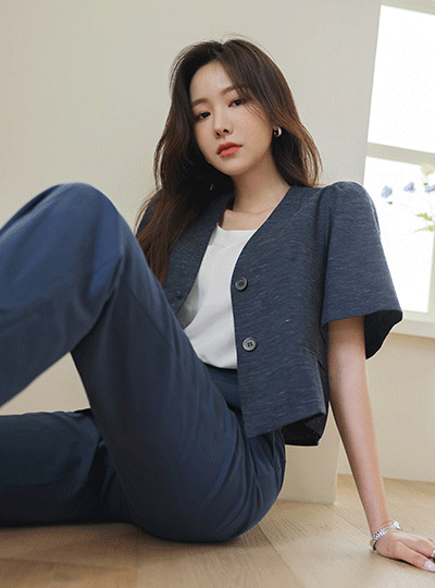 包 扣子 泡泡袖 7分裤 亚麻 夹克