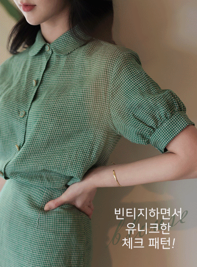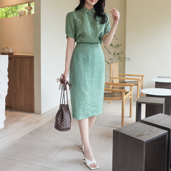 亚麻 原纱混搭 格子 嘴唇口袋 中长款裙