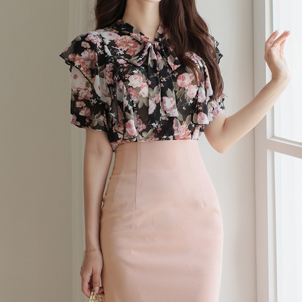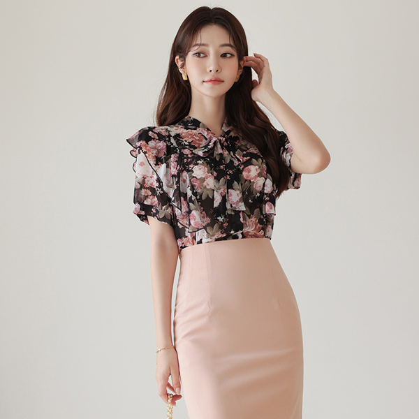 翅膀 褶裥 雪纺 花纹 罩衫