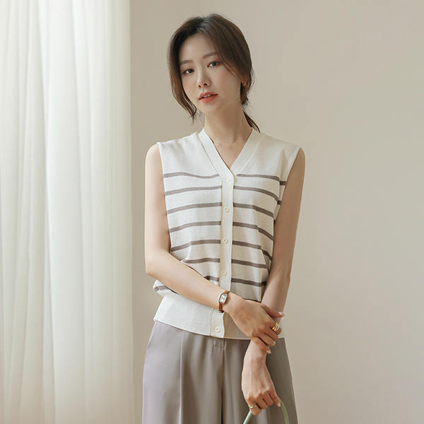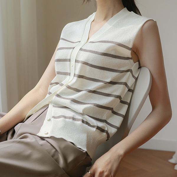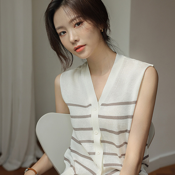 条纹 亚麻纱 夏天 针织衫 马甲