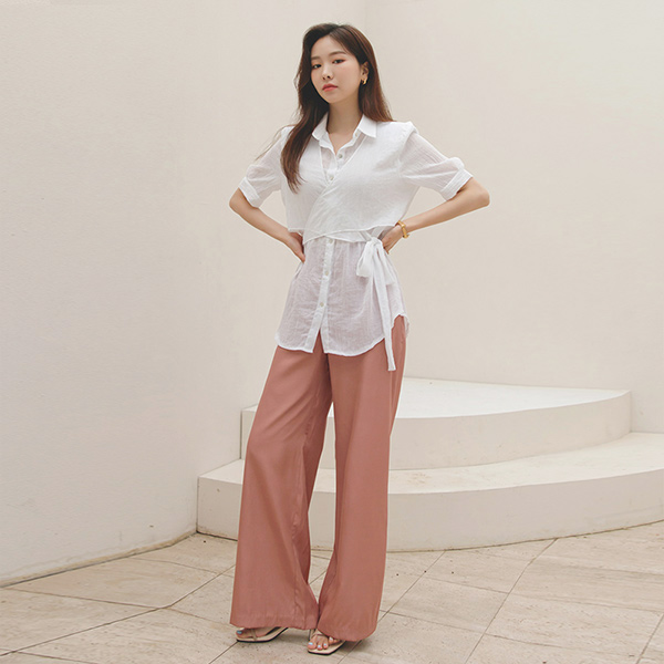 高 类 有光泽 真丝 宽松长裤