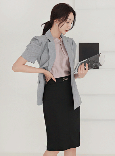淑女 泡泡肩 修身 弹力 夹克