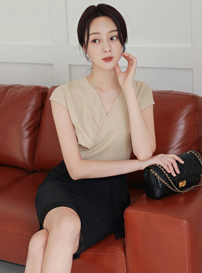 不规则 品齐褶皱 V字领 法式 袖子 罩衫