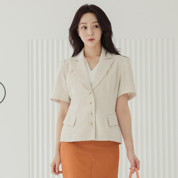 柔丝 水洗 亚麻棉混纺 边缘肩膀线条 夹克